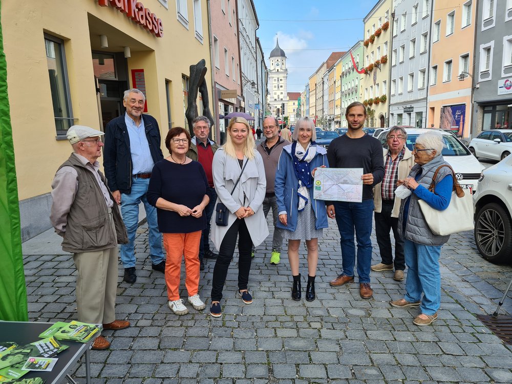 Der Verkehr der Zukunft in Vilshofen war Thema bei den Vilshofener Grünen. Landtagsabgeordneter Toni Schuberl brachte seinen S-Bahnplan in die Diskussion mit ein. Das Konzept, wonach einerseits schnelle, überregionale Linien Vilshofen im Halbstundentakt mit München verbinden, andererseits aber mit zusätzlichen Linien auch die kleinen Haltestellen wie Künzing, Pleinting und Sandbach an Vilshofen angebunden werden, fiel auf breite Zustimmung. Auch der Vorschlag, die noch bestehende Güterstrecke von Vilshofen über Neustift nach Maierhof um ein kurzes Stück bis Ortenburg zu verlängern und darauf wieder Personen zu befördern, sei diskussionswürdig.“ Gerade auch für den Passauer Raum ergeben sich durch die Reaktivierung bestehender Schienen große Chancen“, betonte die grüne Direktkandidatin und Fraktionsvorsitzende im Passauer Stadtrat Stefanie Auer. Der frühere Landesvorsitzende und Fraktionsvorsitzende im Passauer Kreistag Eike Hallitzky dankte Halo Saibold für ihr hervorragendes Engagement im Zusammenhang mit dem Bahnhof Vilshofen. Die ehemalige Bundestagsabgeordnete und Gründungsvorsitzende der bayerischen Grünen Halo Saibold setzte sich vehement für den Erhalt des Bahnhofskiosk in Vilshofen ein. „Bahnhöfe müssen Zentren des städtischen Lebens sein,“ sagte Hallitzky. Großes Interesse gab es auch an den Informationen des Grünen-Mitglieds Alexandra Feilmeier über ihr Unternehmen Fenecon, das aus gebrauchten Elektrofahrzeugbatterien große Stromspeicher zur Stabilisierung der Stromnetze und für den Einsatz in Industrie und eAuto-Ladeparks baut. Die Energiewende erzeuge einen erheblichen Innovationsschub, wenn sie nicht immer gebremst würde.