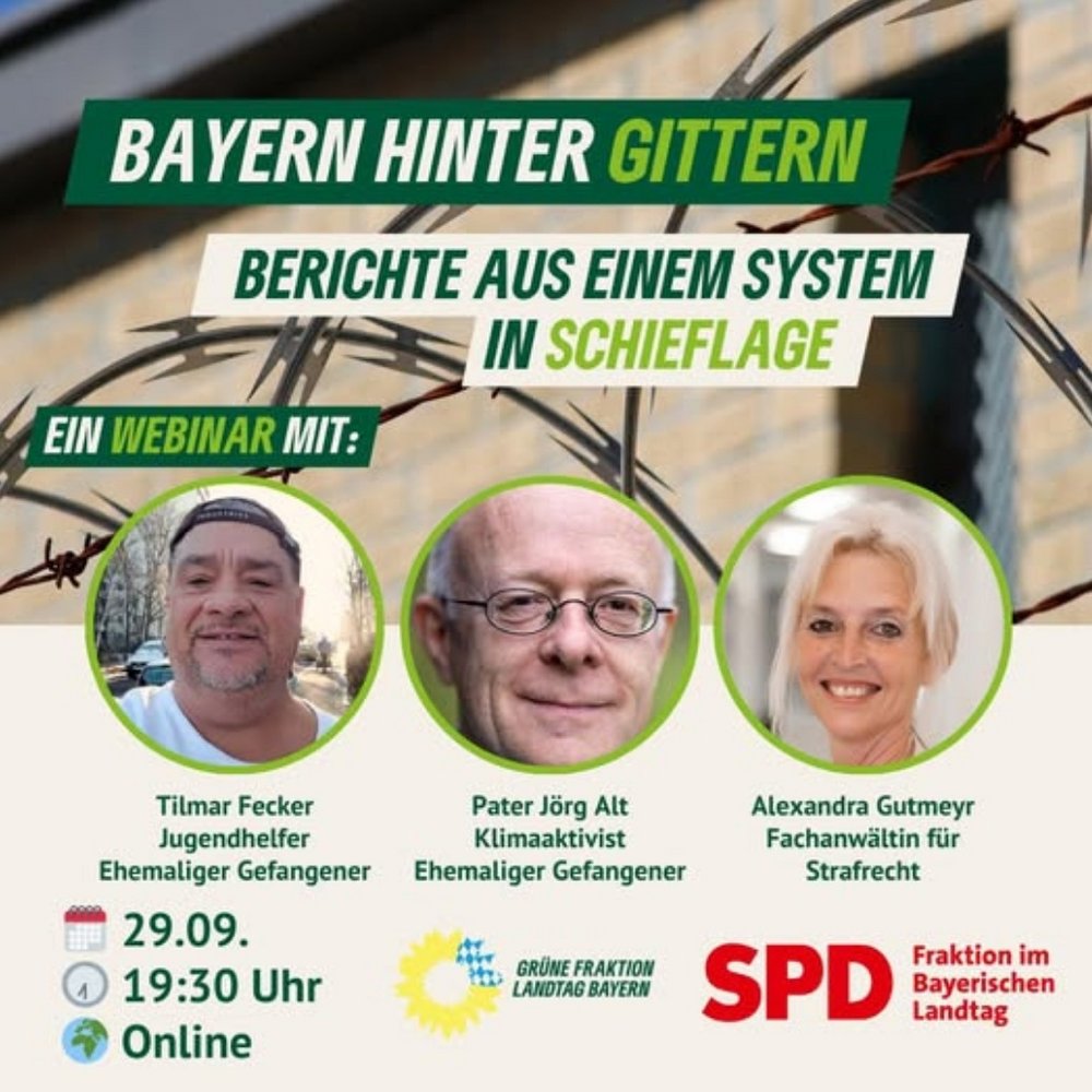 Wir hören uns an, wie es in Bayern hinter Gittern zugeht. Und ihr könnt dabei sein! Merkt euch den 29.09. um 19:30 Uhr schon mal vor. Anmeldungen unter Bayern hinter Gittern - Berichte aus einem System in Schieflage | Anmeldung