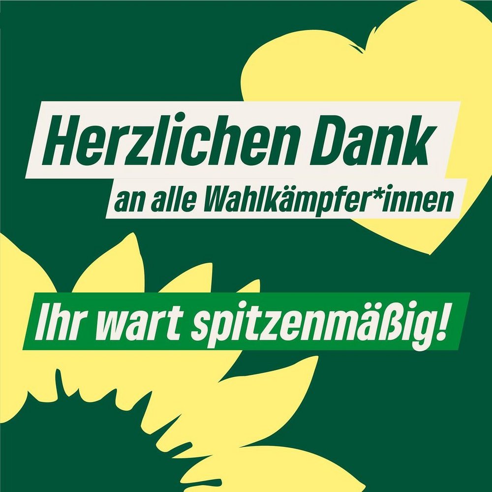 Vielen Dank an die Wählerinnen und Wähler, die uns Grünen gewählt haben!