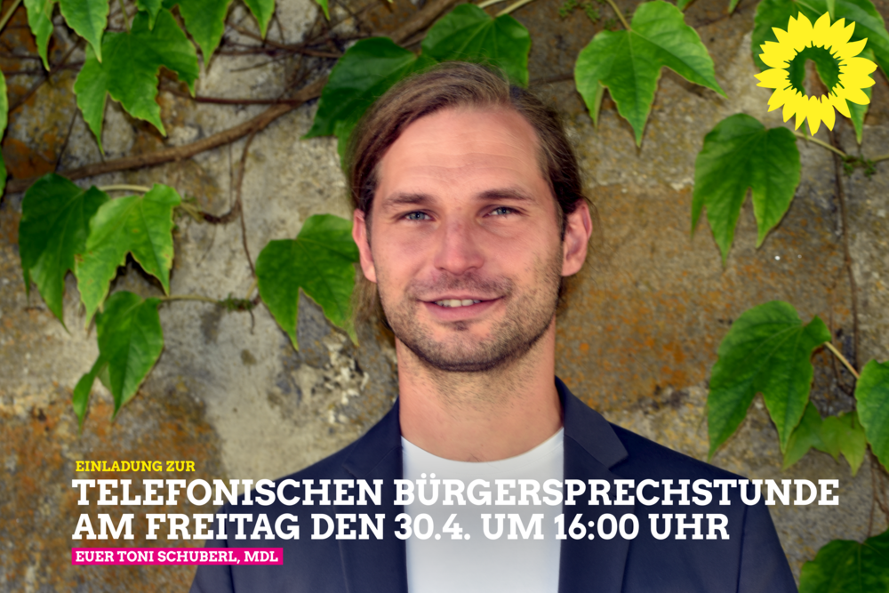 Am Freitag den 30.04.2021 ab 16:00 Uhr bietet MdL Toni Schuberl wieder eine telefonische Bürgersprechstunde an. Interessierte melden sich bitte unter Angabe ihres Anliegens und ihrer Telefonnummer per Email an presse@toni-schuberl.de an. Anschließend wird der genaue Zeitraum vereinbart.