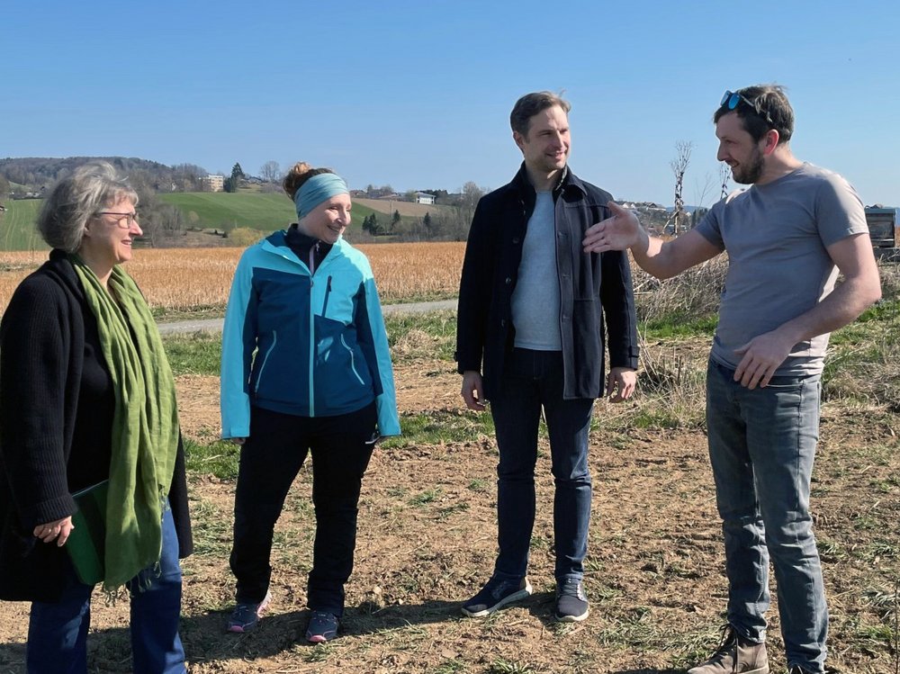 Der Landtagsabgeordnete Toni Schuberl (Bündnis 90/Die Grünen) besuchte zusammen mit Vertreterinnen des Ortsverbands Perlesreut den Hof von Daniel Pretzl in Waldenreut. Mit dabei waren Marktgemeinderätin Elisabeth Hafner-Seidl, Co-Sprecherin Annemarie Kraus und Sandra Prent.