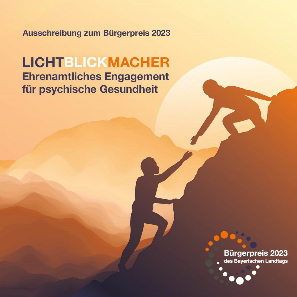 Der Bürgerpreis des Bayerischen Landtags 2023 richtet sich deshalb zum einen an ehrenamtlich getragene Initiativen und Projekte in Bayern, die Betroffenen dabei helfen, mit ihrer Krankheit umzugehen und den Alltag zu bewältigen. Zum anderen sind ehrenamtlich Engagierte eingeladen, sich zu bewerben, die Prävention zum Erhalt von psychischer Gesundheit betreiben, sowie Initiativen, die Menschen aus dem Umfeld von psychisch erkrankten Personen unterstützen.