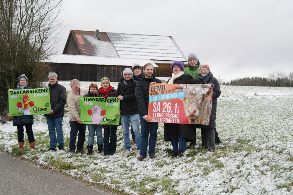 Als bedenklich sieht Schuberl darüber hinaus auch an, dass sich der Betrieb bei dieser Mastanlage von der Agrarindustrie abhängig mache. Die Mast sei vom Grund und Boden des Bauern abgekoppelt, da das Futtermittel vom Kooperationspartner stamme, der auch die Hähnchen liefere und wieder abhole. Dem Bauern bleibe eigentlich nur, einen Stall zur Verfügung zu stellen, die Hähnchen zu versorgen und den Mist zu entsorgen. Alles andere ist ihm entzogen. Schuberl fordert: „Ein Bauer muss ein Bauer bleiben und nicht zum Dienstleister für einen Konzern werden.“ Dieses Projekt sei nicht mehr zu verhindern, sagt Schuberl, doch gerade jetzt gebe es die Möglichkeit, die Staatsregierung unter Druck zu setzen, um eine Änderung der Politik zu bewirken. Er rief die betroffenen Bürger auf am 26. Januar nach Passau zur Demo „Wir haben es satt“ zu gehen.
