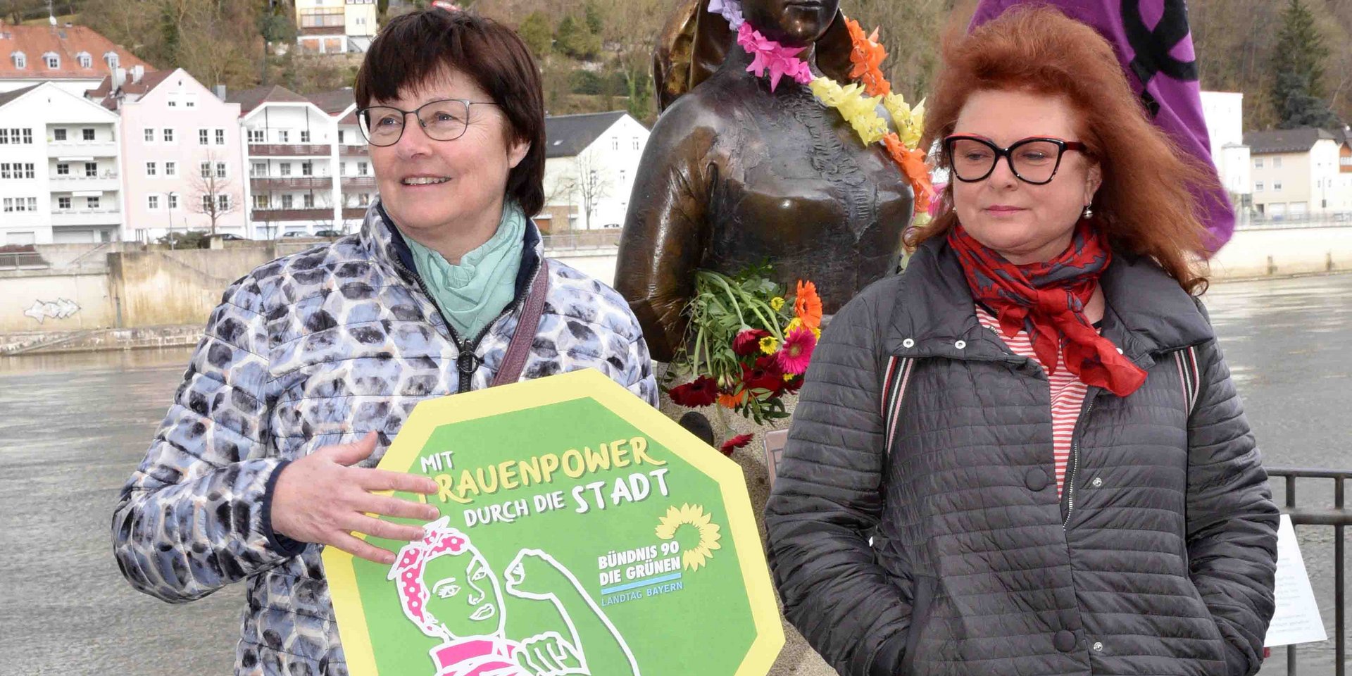 101 Jahre Frauenwahlrecht, über 150 Jahre Frauenbewegung. Wir Landtags-Grüne setzen uns das ganze Jahr über für Gleichberechtigung und Selbstbestimmung ein, unabhängig von Geschlecht, Generation, Hautfarbe, Behinderung, sexueller Ausrichtung, kulturellem Hintergrund und sozialer Herkunft. Und auch am Internationalen Frauentag wollen wir die Gelegenheit nutzen, an den Kampf unserer Vorgängerinnen zu erinnern, ohne die wir nicht da wären, wo wir jetzt sind. In jeder Stadt, in jedem Dorf in Bayern gab es und gibt es Frauen, die aufgrund ihres Geschlechts nicht die Anerkennung bekommen haben, die ihnen für ihre Taten zugestanden wäre: Künstlerinnen, Erfinderinnen, Politikerinnen, Geschäftsfrauen.Am 8. März 2019 luden die Landtags-Grünen deshalb in sieben Städten in sieben Bezirken auf eine Tour ein, die die Frauen des jeweiligen Ortes würdigt: Mit Frauenpower durch unsere Stadt! In Passau waren MdL Rosi Steinberger, MdL Toni Schuberl und unsere dritte Bürgermeisterin Erika Träger.