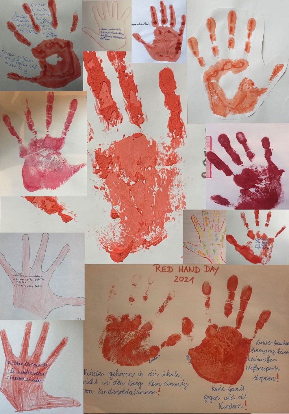 Nach Schätzungen der Vereinten Nationen sind weltweit noch immer bis zu 250.000 Kindersoldaten im Einsatz. Am Red-Hand-Day übergeben viele junge Menschen einen Abdruck ihrer Hand an Politikerinnen und Politiker, um das Schicksal von Kindersoldaten anzumahnen. Weltweit wurden bereits über 450.000 Rote-Hand-Abdrücke an Politikerinnen und Politiker geschickt.