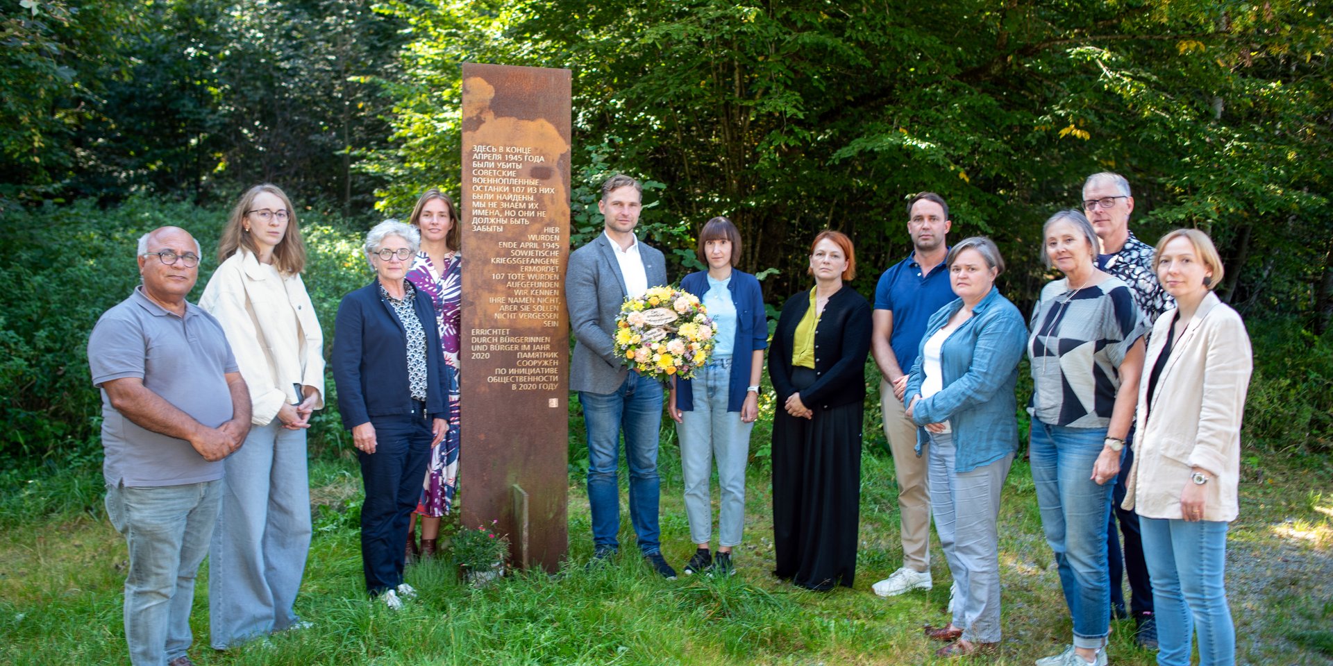 Vor Kurzem gedachten Vertreterinnen und Vertreter von BÜNDNIS 90/DIE GRÜNEN der ermordeten sowjetischen Kriegsgefangenen am Mahnmal in Passau-Ingling und legten einen Kranz nieder. Am Ende des Zweiten Weltkriegs waren viele sowjetische Kriegsgefangene in Passau und Umgebung inhaftiert. In den letzten Kriegstagen wurden hunderte von ihnen ermordet, insbesondere am Ufer des Inns, wo nun am Eingang des Neuburger Waldes das Mahnmal steht.